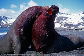 Or elephant male seal versus elephant male seal, bloodying their snouts, seeking dominance and multiple female seals?
